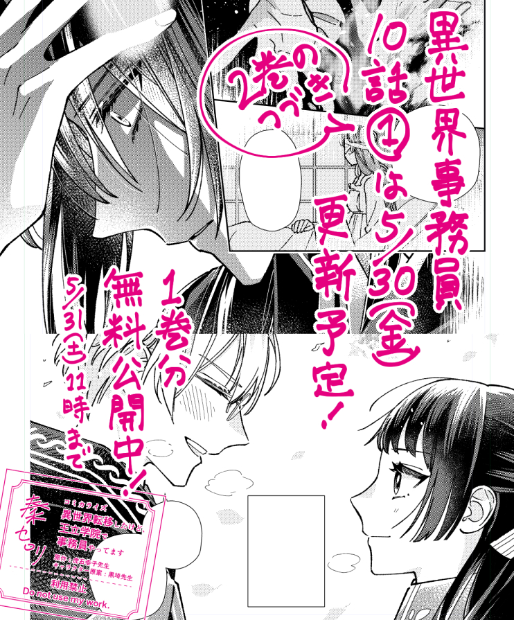 2巻の続き!!!コミカライズ『異世界転移したけど、王立学院で事務員やってます』第10話①は5月30日更新の予定です!
